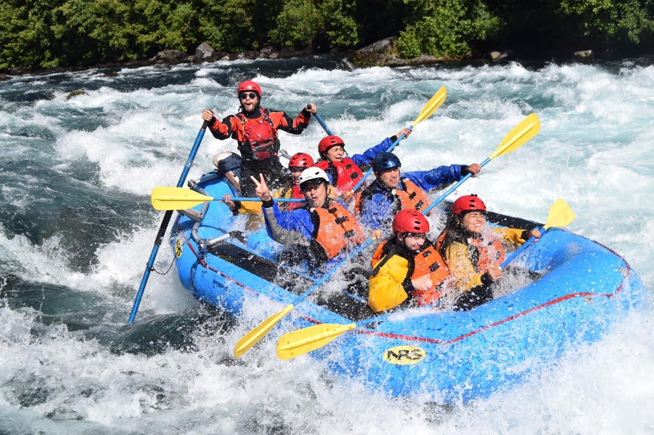 Vive una experiencia llena de energía en el río Petrohué, donde te espera un descenso de cerca de una hora rodeado de pura naturaleza. A medida que avanzas por sus aguas cristalinas, se abre frente a ti un entorno de bosque, montañas y formaciones rocosas que parecen sacadas de una postal. Desde distintos puntos del recorrido podrás disfrutar vistas privilegiadas del Volcán Osorno, que se eleva imponente sobre todo el valle. Es una actividad perfecta para quienes buscan combinar aventura, paisajes inolvidables y esa cuota de adrenalina que hace que el viaje sea aún más memorable.
